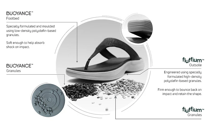 The fluffium sole help absorb pressure and springs back, ensuring minimum impact and maximum comfort.
